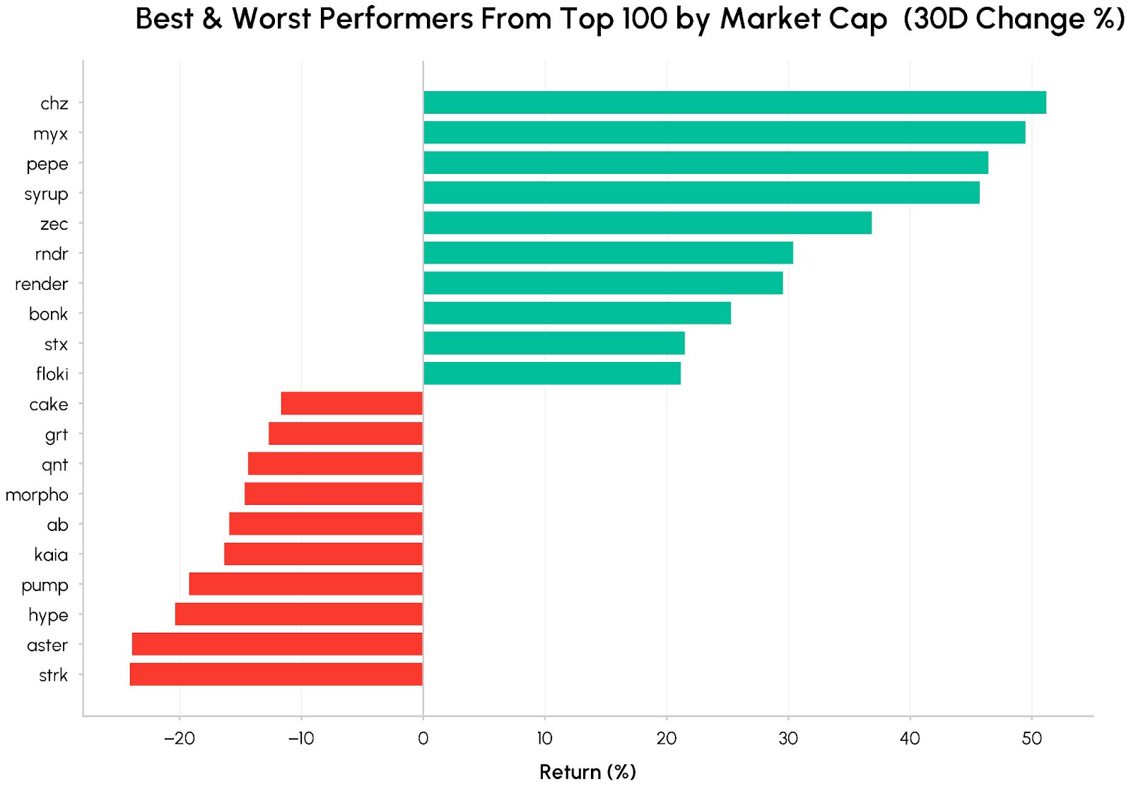 Notable gainers over the past month include memecoins like PEPE and BONK, privacy-focused networks Zcash (ZEC), and institutional credit platform Maple Finance (SYRUP), highlighting renewed interest across memecoins, privacy, and DeFi tokens with explicit revenue‑sharing and visible cash‑flow growth.