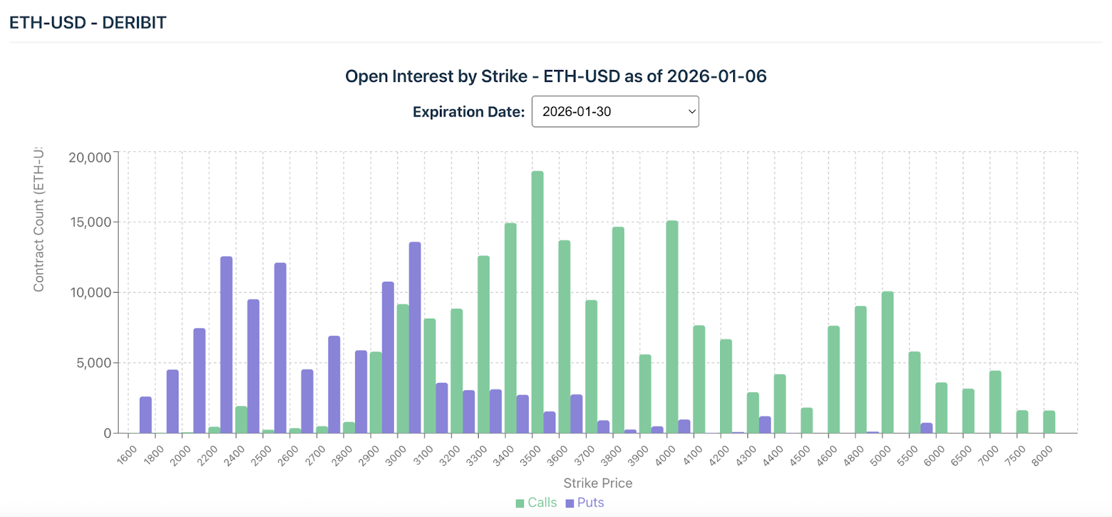 Derivatives positioning points to cautious bullishness heading into Q1. The charts below show BTC and ETH open interest by strike price for contracts expiring on January 30th 2026 on Deribit. This offers a snapshot into how participants are positioning for near-term outcomes in options markets.