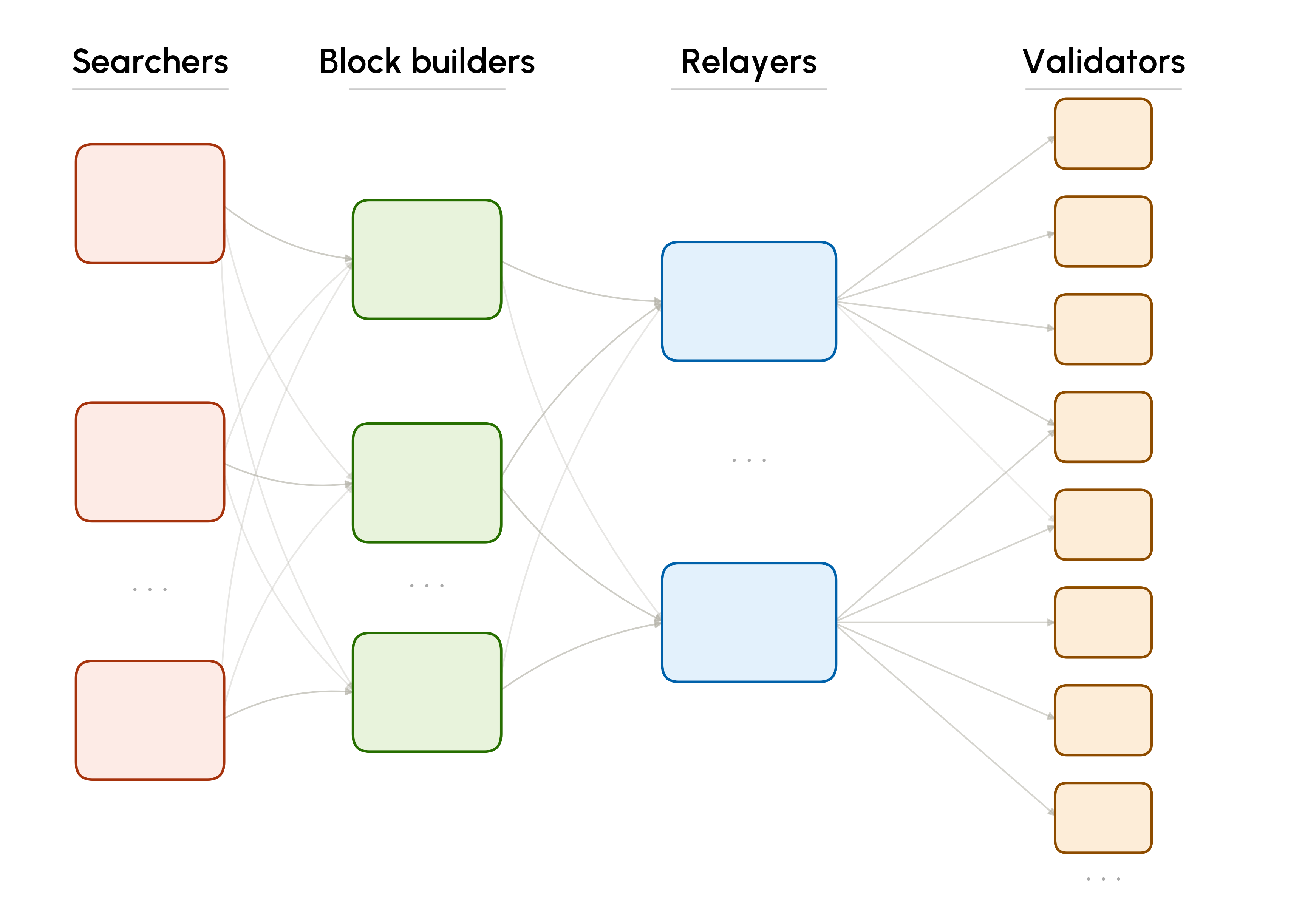 Here, we highlight key intermediaries who affect the transaction lifecycle and how they contribute to generating MEV opportunities.