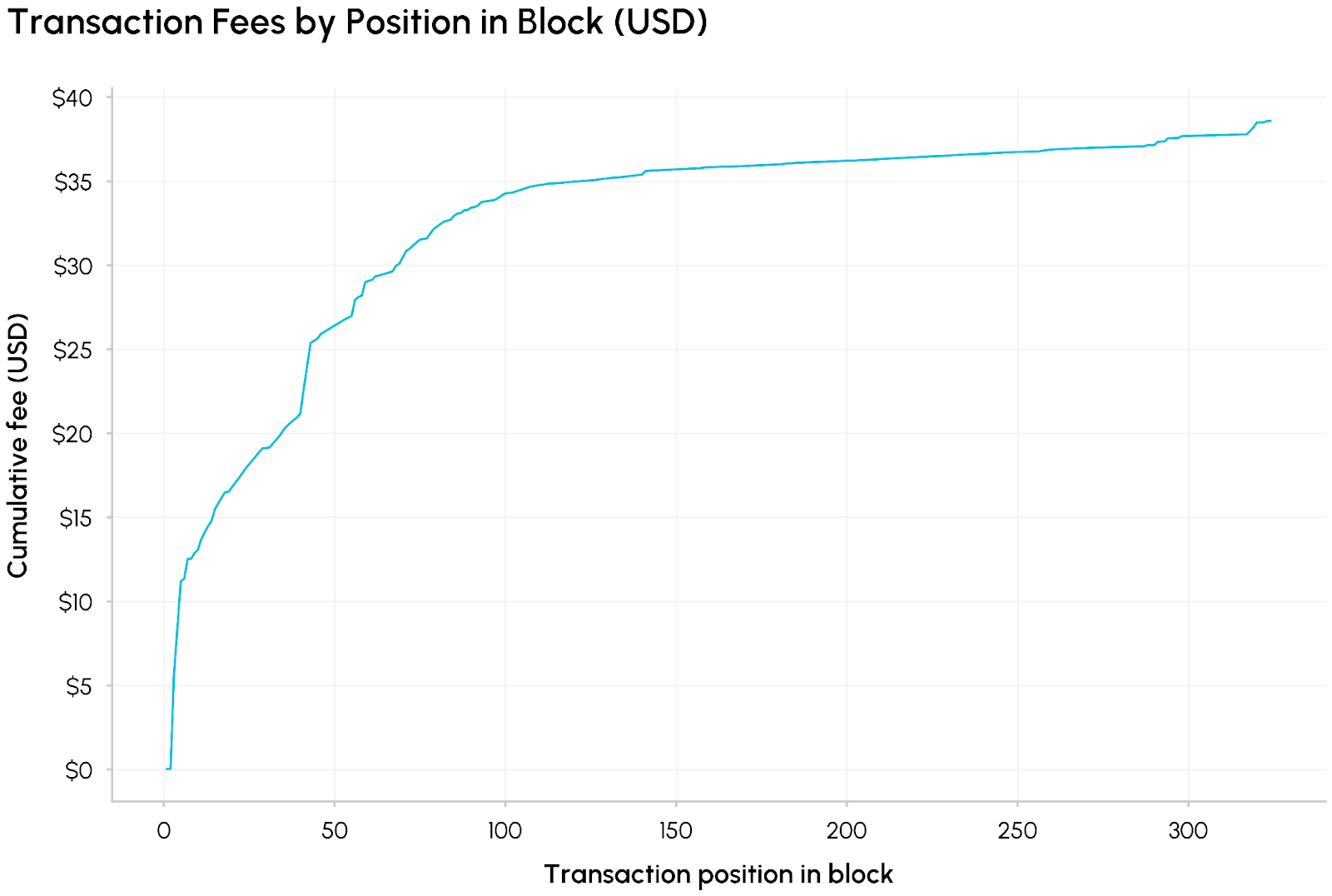 A majority of this block’s value is in the first 12.5% of transactions, which illustrates how block builders are incentivized to pack as many valuable transactions in its block to win the auction. As they continue to add transactions to a block, the builder then becomes limited by computational limits and order flow.