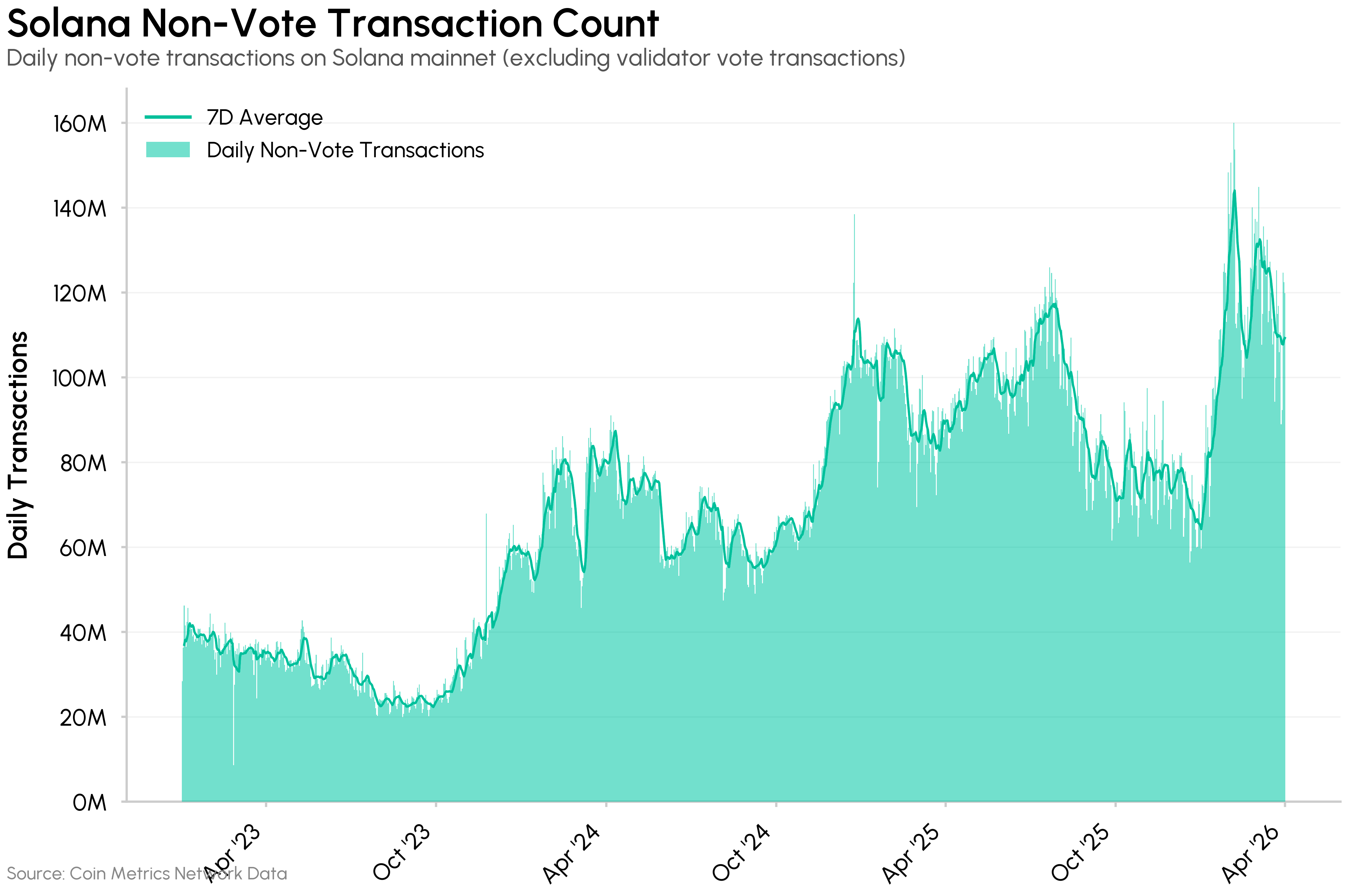 Solana is moving beyond its early reputation as the “retail and memecoin chain” towards its Internet Capital Markets vision. Sub-cent transaction fees and block times under 400 milliseconds make Solana the natural environment for applications that demand high velocity such as payments, micropayments, and high-frequency trading. This profile is attracting a distinct class of applications that require low-latency execution at scale.