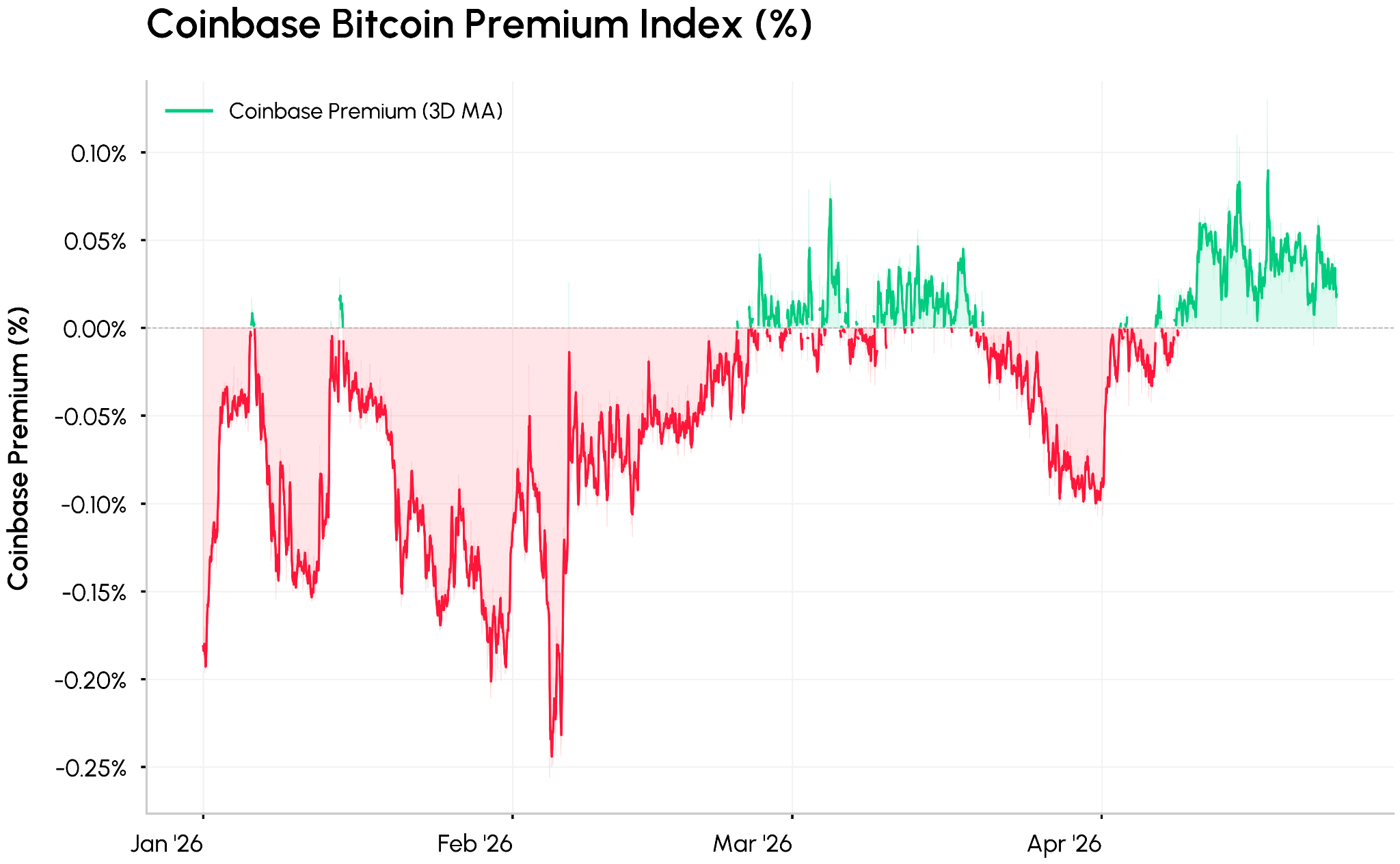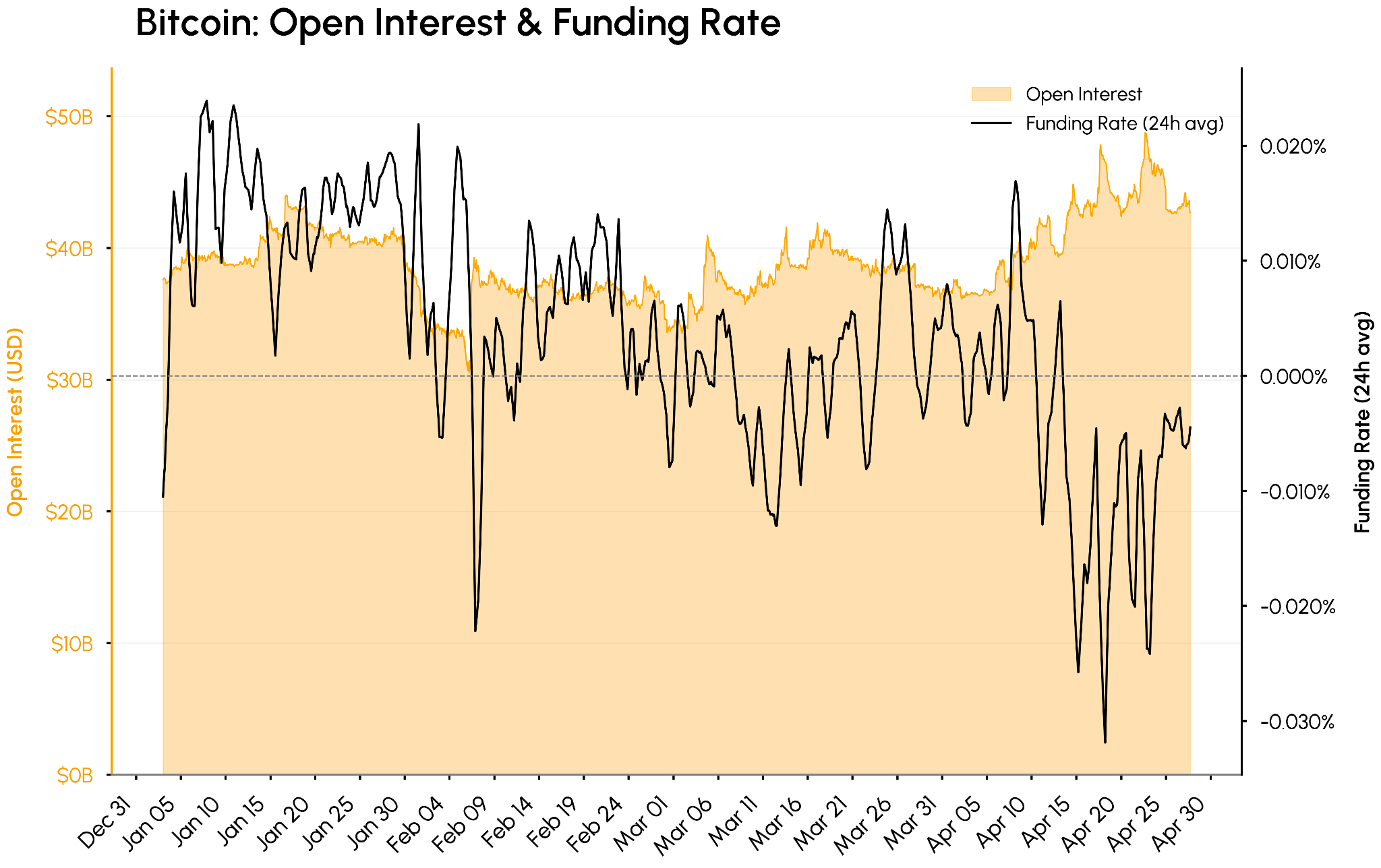 - April saw the strongest monthly net inflows into spot Bitcoin ETFs since October 2025, while futures positioning leaned short and funding stayed mostly negative.